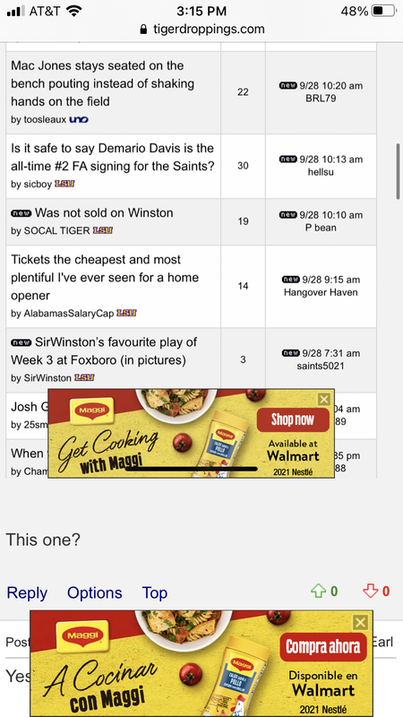 I'm getting the same spanish "Maggi" ad as well. It keeps popping up on every thread and when I click next page as well.