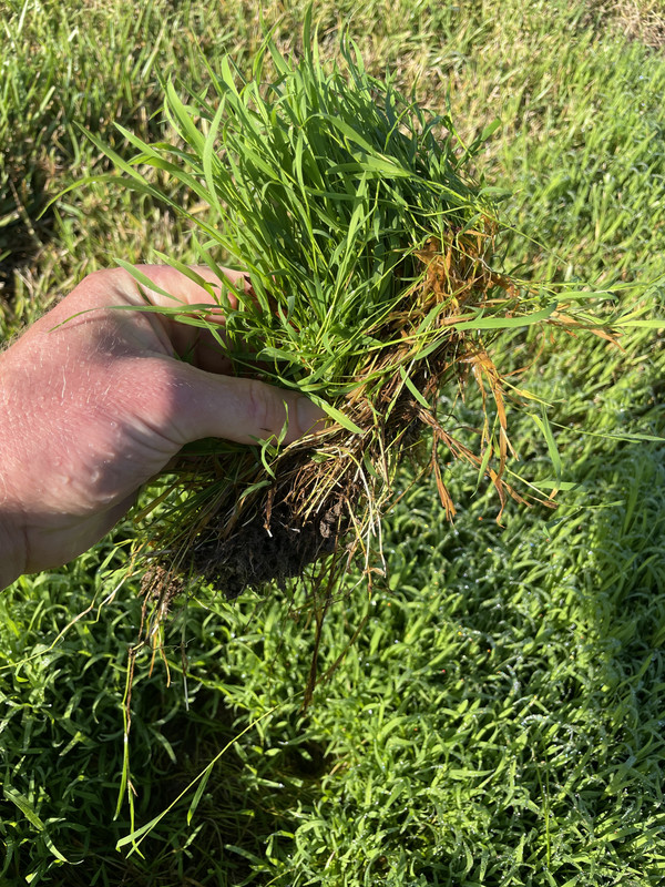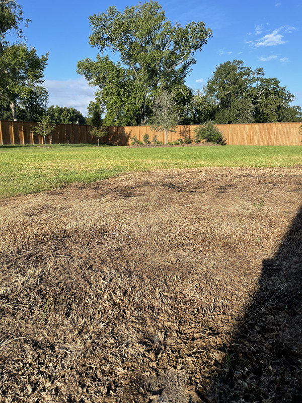 I grabbed a few more pics for y’all. This area does hold water longer than the rest of the yard, it’s at the bottom of a slope off the driveway. I already had to nuke a stand right off the back of the house that died and got full of weeds in June drought, was nothing but a river silt base on a slope with high traffic from kids and power wheels ! So planning to till and amend it with some more organic material before re sodding. I wish I would have waited and just sodded the whole back yard instead of plugging, but at the time I was already 50 pallets deep (1 acre yard).
