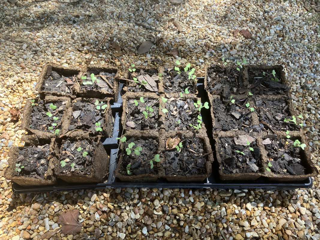 It rained pretty good at my place yesterday. Good morning to pull some weeds with the ground being soft. The jalapeños look good. The first round of cabbage is slowly growing, putting on their first true leaves finally. And the butternut and cucumber vines are really taking off!