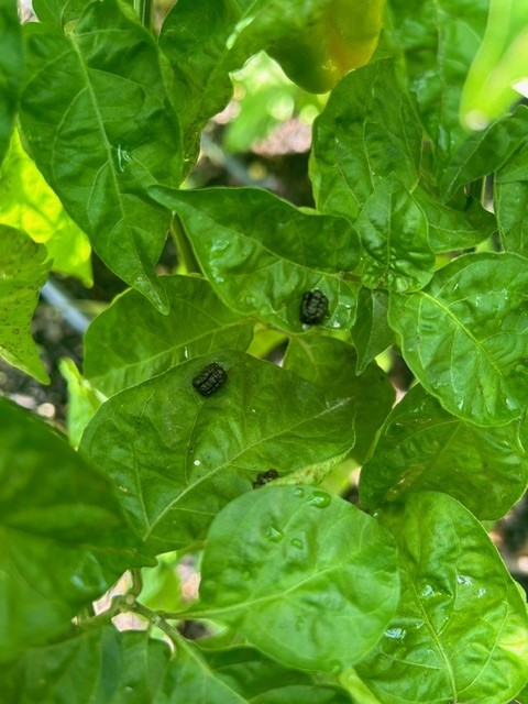 Hornworm poop. Better find them quick. Cause you’ll wake up to your plants stripped bare.