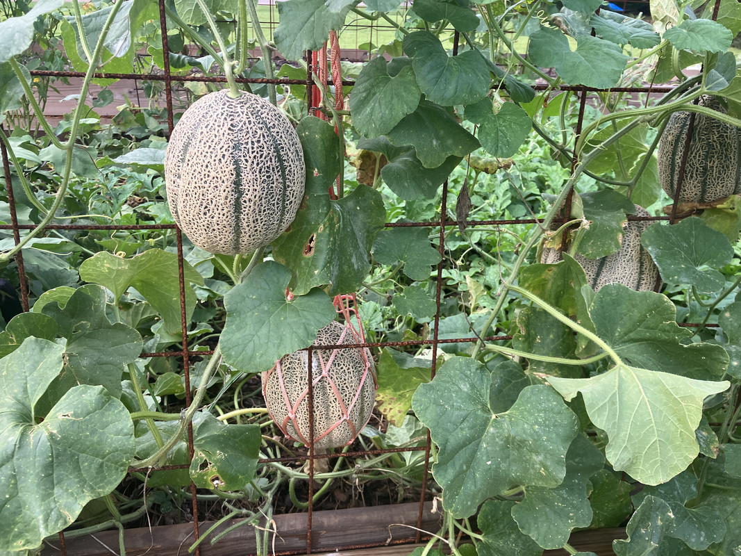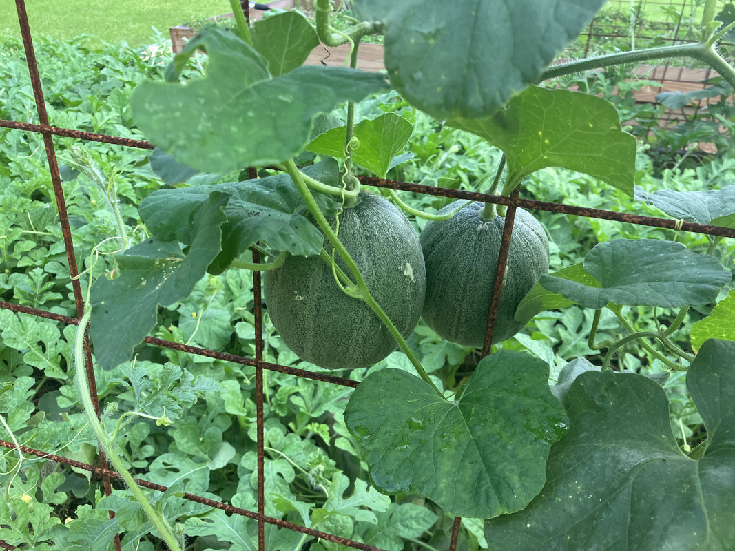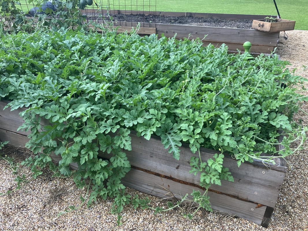 My cantaloupes and watermelons produced, but neither got very large fruits. Not sure why. Everything else in the beds did fine.