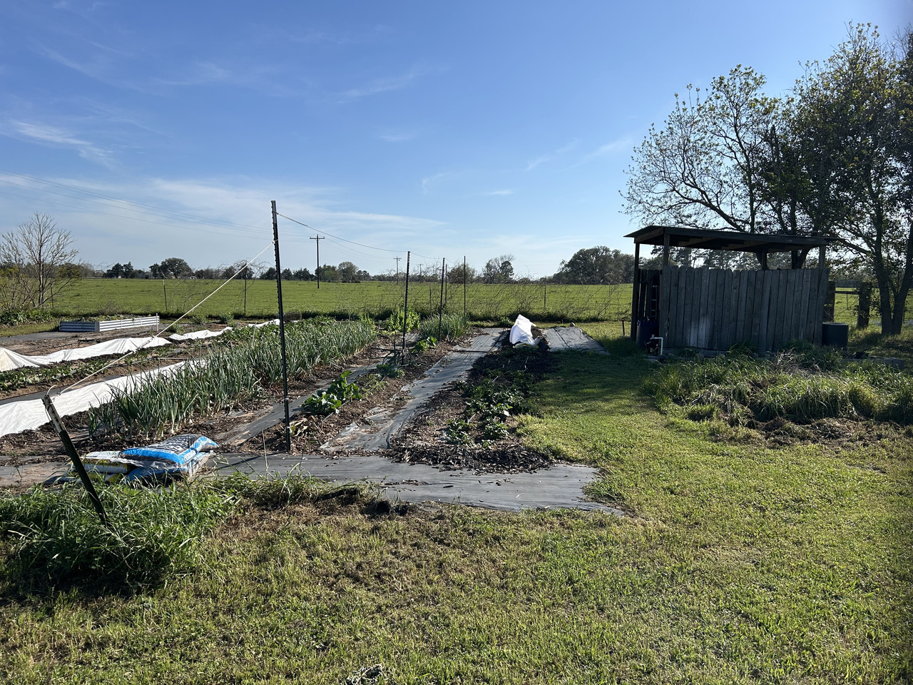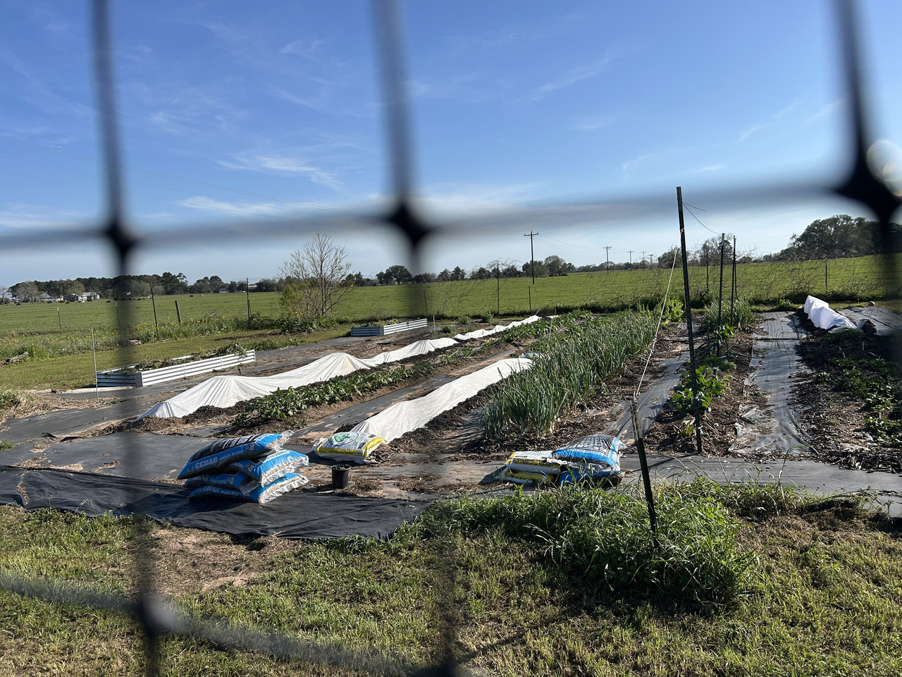 We’re prepped and ready with peppers, tomatoes, green beans, and squash covered. We’ll see if it holds against the wind shortly.