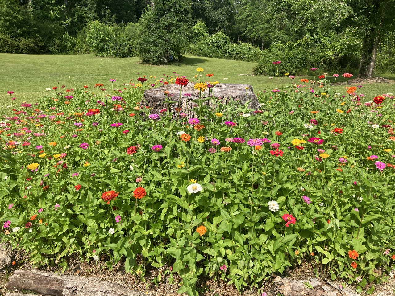 Here’s a pic, these are last years zinnias around a water oak stump