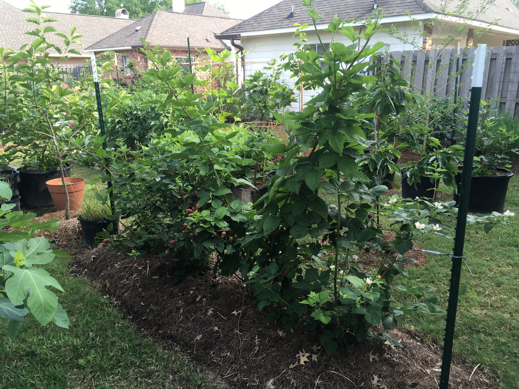 Cut back - well I will remove the floricanes after fruiting as they are going die when fruiting is completed. The primocanes that are growing now, but not fruiting, and should fruit on this variety in the fall, I will probably prune this summer, to induce more lateral branching to produce more fruit. Have a little more homework to do as this my first time with the spring and fall fruiting variety of blackberry and it need to get the timing right. I do have another row of 3 Arapaho, and a row of six, Natchez and Ouachita (3 of each) - thornless, erect varieties, but they produce only a spring crop.
