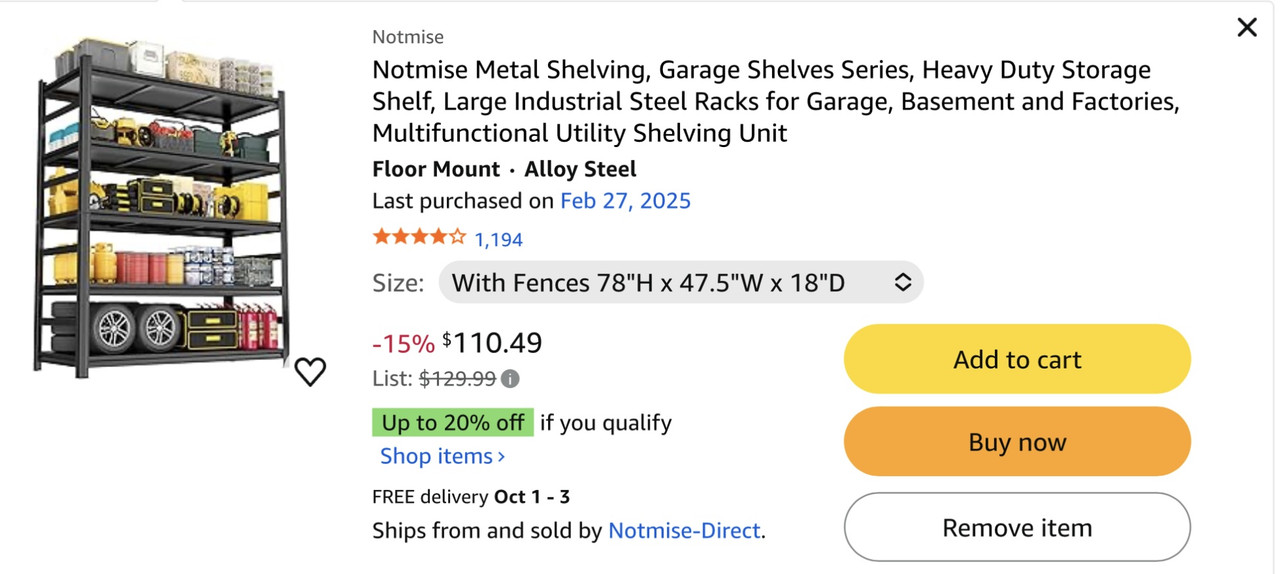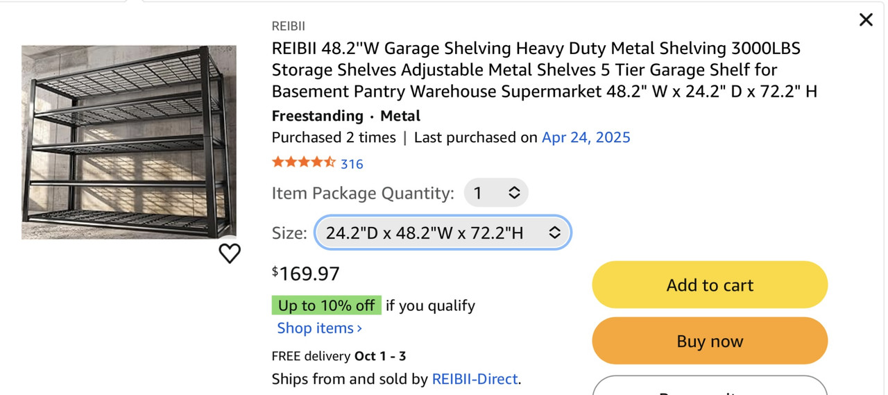 I also purchased a pair of these several years ago, from Costco, to free up garage floor space for seldom used items several years ago but as I recall I paid 1/2 this amount as they were closeout at the time and it was pre-Covid. They are heavy duty.