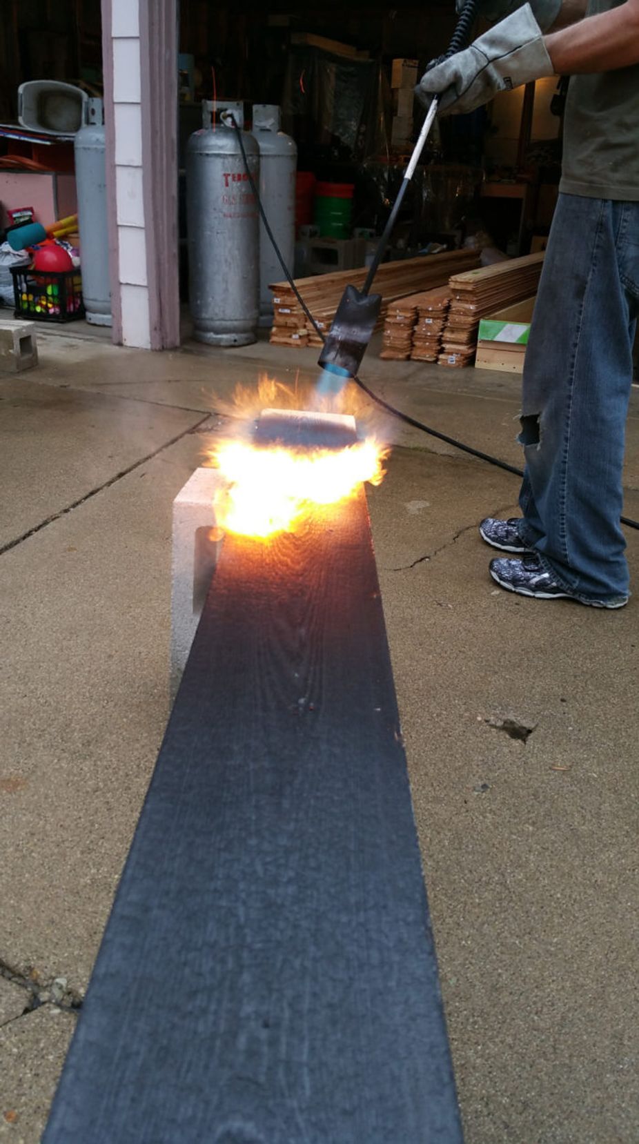 I like that idea about blackening the boards by lightly burning. Before the use of metals were known to man, they make arrows and spears out of wood sharpened to a point and then set over a fire just long enough to lightly burn the wood and that made the points harder.