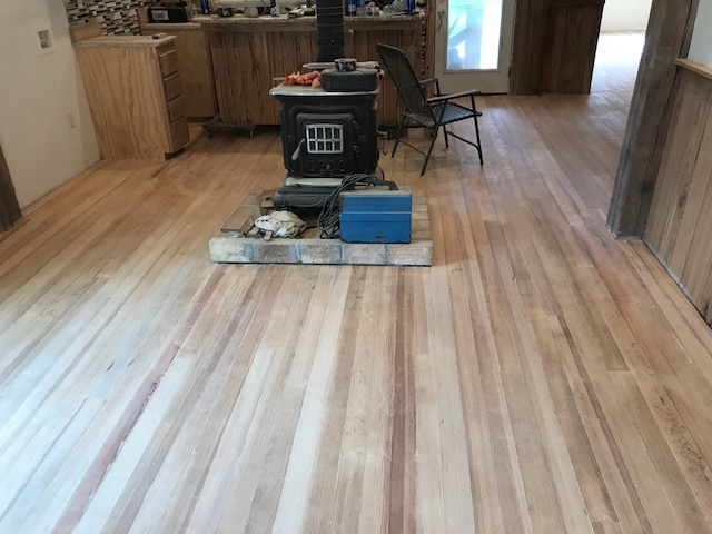 This is the pine flooring. Still have to apply Waterlux coating. Had just got it in, but been dealing with a new pup.