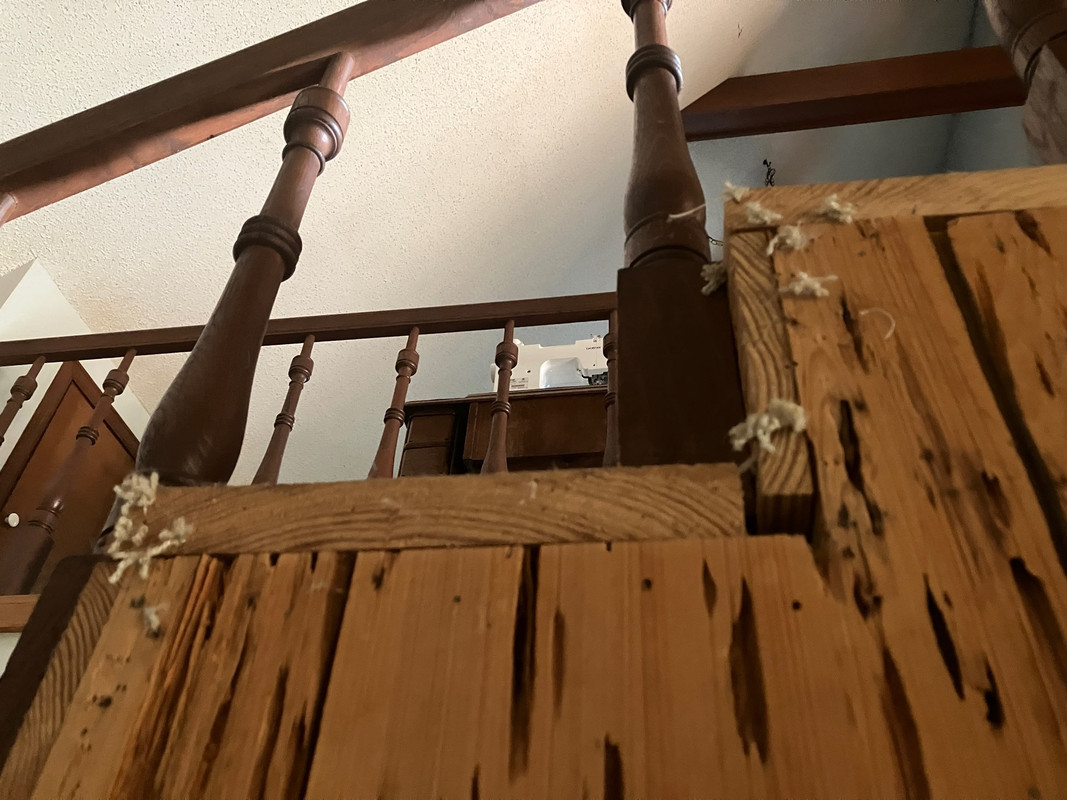 I pulled the nasty carpet off the stairs so I’m going to trim the inside and outside of the 2x treads and risers and have those cleaned and stained. Will definitely look better and fine with me