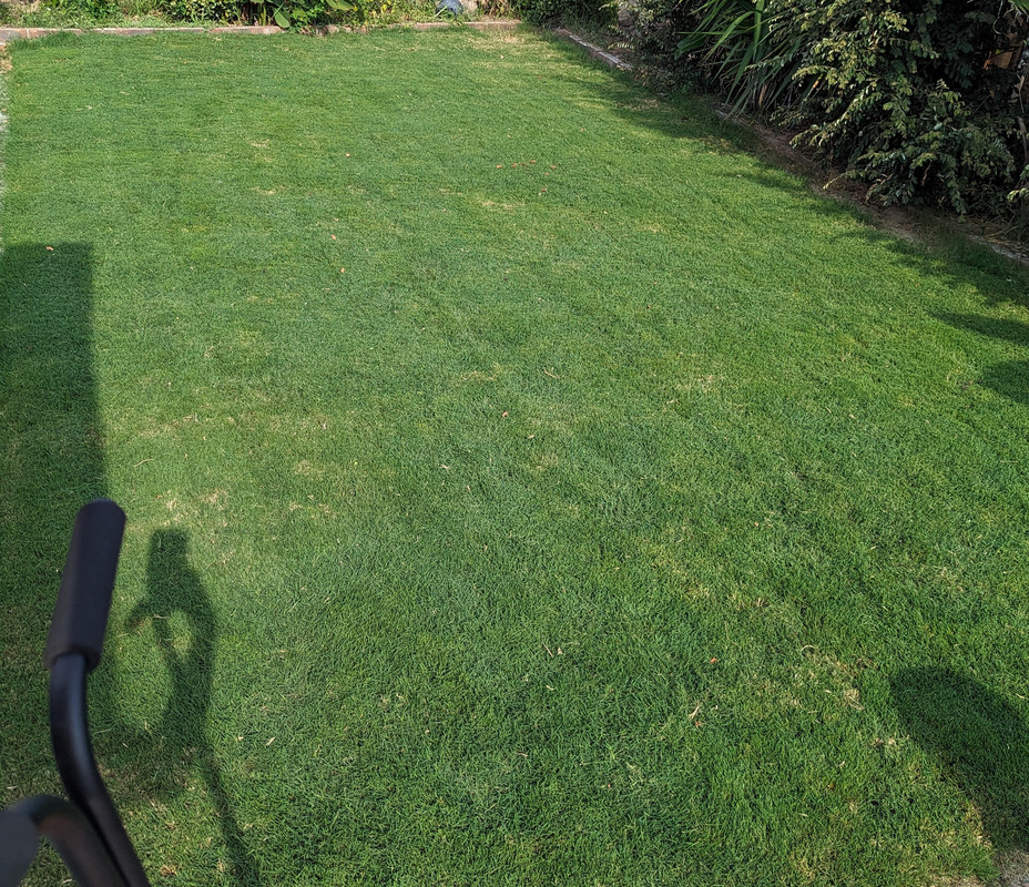 This is the grass after using the mower for about 2 weeks wasn't watering much before but am now that I'm cutting it short.