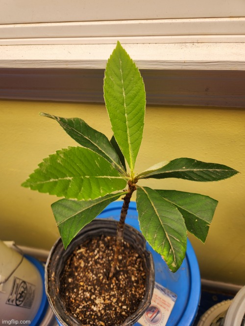 Kari starfruit / carambola recovered from shipping, bare root, and repot. Starfruit are huge drama queens and there were like 5 leaves on this 3 weeks ago. Also needs significantly acidic soil and foliar nutrients.