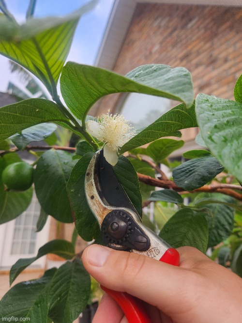 The big lemon guava is flowering.