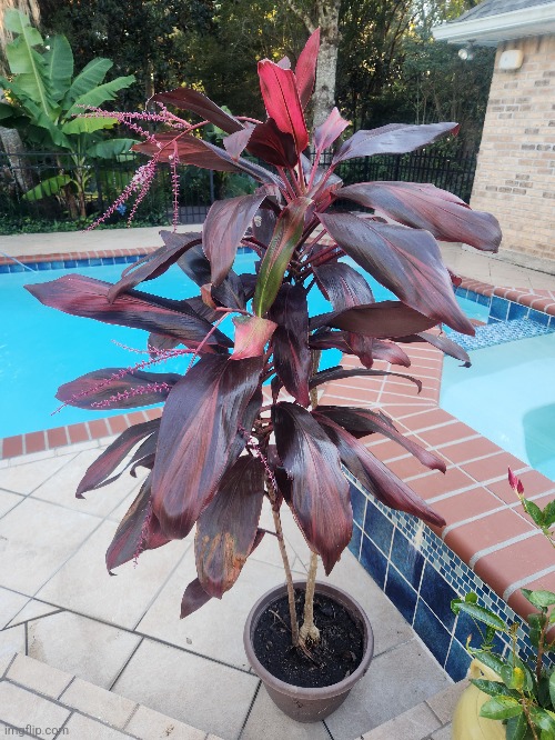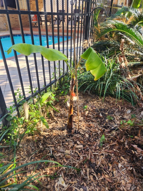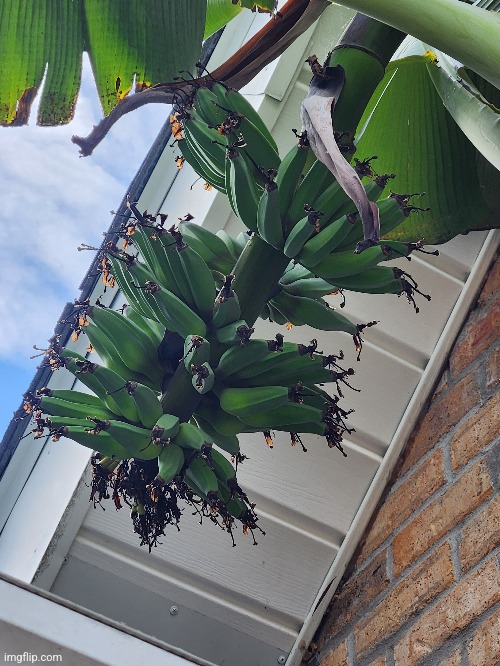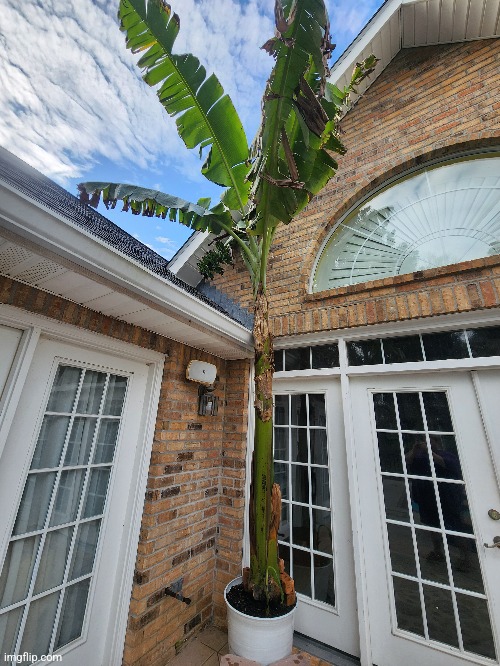 I have about 5 namwah / ice cream bananas, but I grew one in a pot just for the hell of it and it flowered in January just in time for freezing weather. Luckily my wife is cool and the ceilings are high so it stayed in our living room for 2 months. Here it is back outside for the first time today.