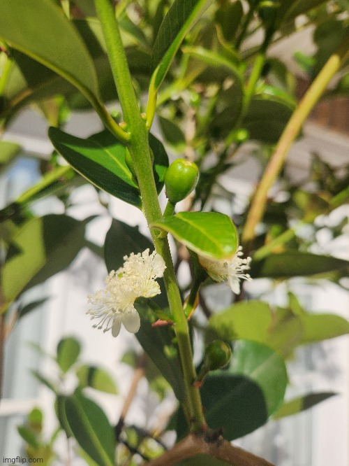 The big lemon guava is flowering.
