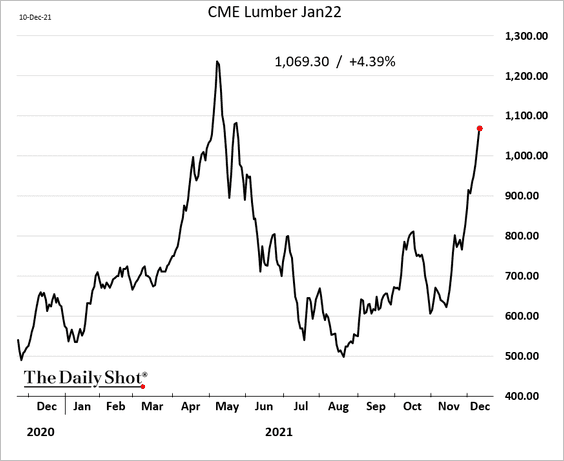 Framing lumber is ~$900/per kbf. January CME futures are currently $1044, May is $934. For reference it was $1,500 in May and $400 in August.