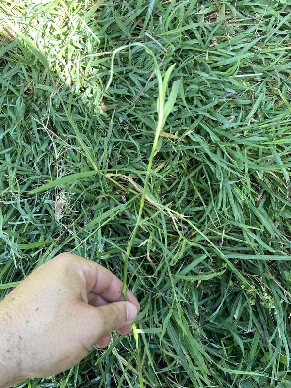 This is the seed head that I am seeing on the problem “grass”. Looks to be originating from single spots with runners that are feet long. The yard feels almost spongy with how intertwined the runners are shooting out from each origination spot