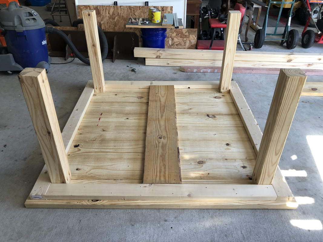 Been working on a pair of these lately... got the base built for the first one and have mostly finished both stool tops. Going to build out the other frame soon then sand everything down