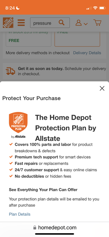 Home Depot sells a warranty that states you get a replacement if the equipment quits working properly. It cost about 10% of the total purchase price of the electric pressure washer. It’s a no-brainer.