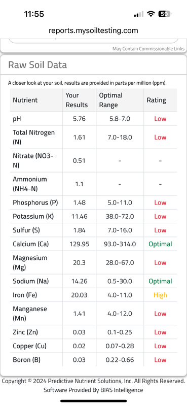 Finally got around to a soil test. Results came in today.