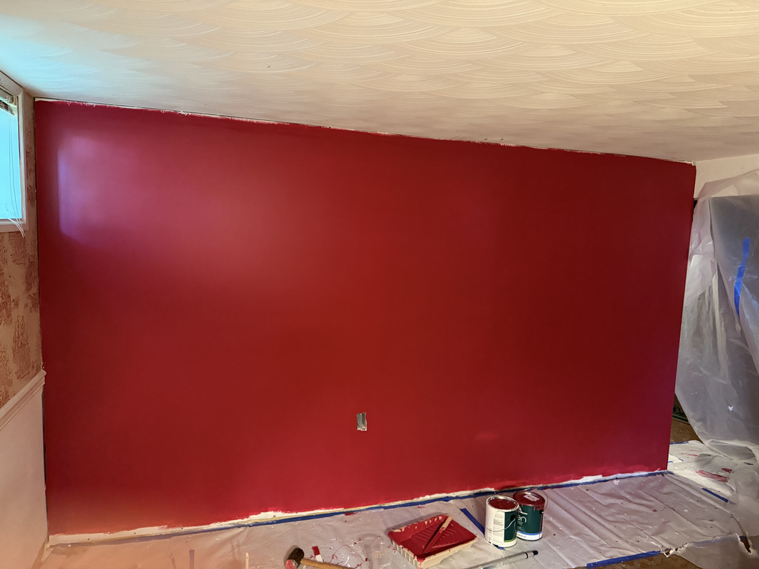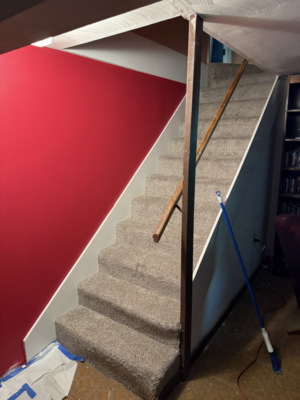ETA: well this project is almost done. Carpet got installed today. Took 4 fricking coats of paint to get the red to not look streaky. I’ll definitely need to buy more to finish out the room we semi enclosed with my wall. Carpet guys fricked up my trim paint job but oh well. I’ll just have to work on it a bit.