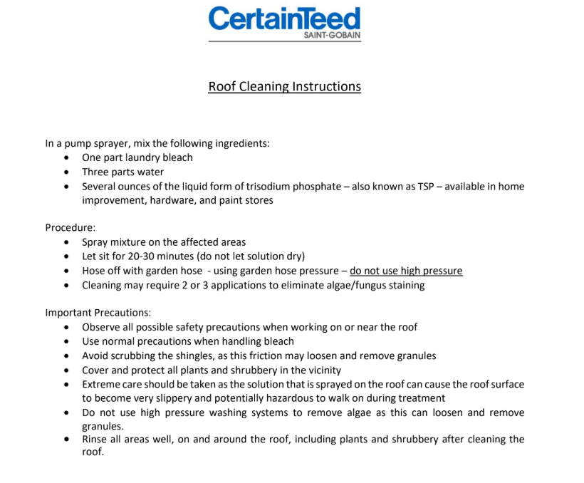 Been out the game for a few years now. But I sold Certainteed for a long time. I’m surprised they revised their warranty. Sure enough there is nothing about not using bleach on your shingles. It used to be something in the warranty about cleaning with chemicals. I guess they can still get you with “damage from any cause other than inherent manufacturing defects”. Honestly after about 10 years it really doesn’t matter.