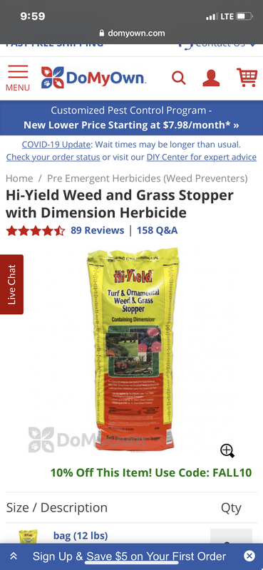 Just ask for pre emergent and they’ll know what you need. I bought a 35lb bag at the local nursery for $40 and I only used half or less