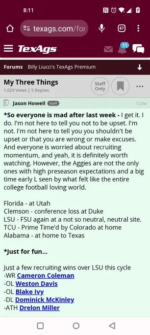 A$M can’t develop players for shite, but they are absolutely out recruiting us in this class whether it’s NIL related or not. Granted, most of their head to head wins are for kids in Texas, but we used to win our fair share of those. I’ll wait to see what happens on signing day, but the staff needs to close strong with this class.