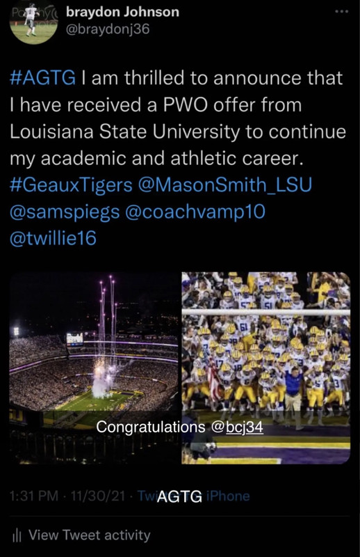 Scone just said he thinks LSU is getting three players from Ponchatoula including Johnson.