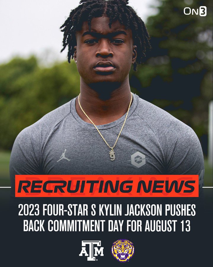 “It’s been really hard,” Jackson told On3 on the decision-making process. “Both schools have really picked up the communication. LSU and Texas A&M — they’ve both been coming really strong and the push has been really good. They’re making it close, so I think I’m gonna push it back a few days just to be fully sure of what I wear I really want to go.”