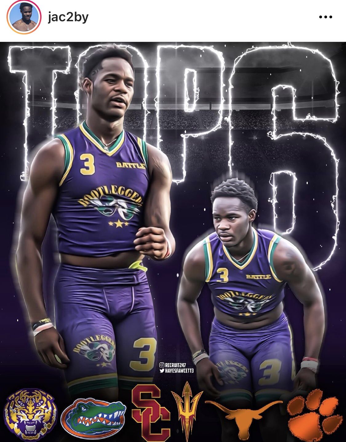 Five-star safety Jacoby Mathews releases his top 6 on IG: LSU, Florida, USC, Arizona State, Texas and Clemson.