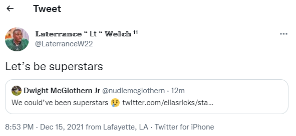 McGlothern’s tweet is shade towards Ricks. It’s lyrics from a new song. What he really means is two sentences after what he quoted. The song is Super Gremlin by Kodak Black.