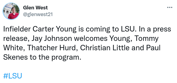 re: LSU Baseball 2022 (and beyond) Recruiting Thread (OLD THREAD, PLEASE STICKY NEW ONE)