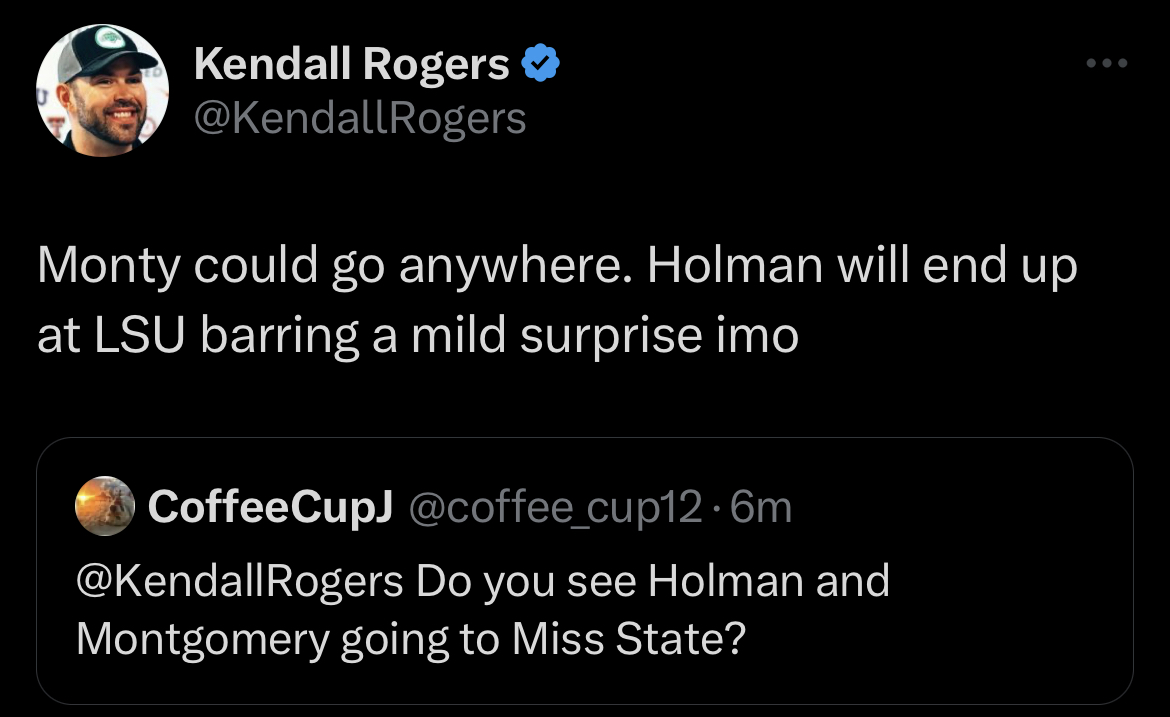 Monty could go anywhere. Holman will end up at LSU barring a mild surprise imo.