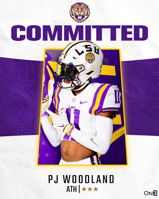 PJ Woodland, 6-0 165 lbs, DB from Hattiesburg, Mississippi (Oak Grove) has committed to #LSU. Woodland was previously committed to Miss State and has offers from Texas, Auburn, Ole Miss.