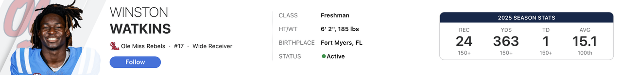 I heard Watkins as a name to watch from my Ole Miss uncle right after we hired CLK. He’s a good player