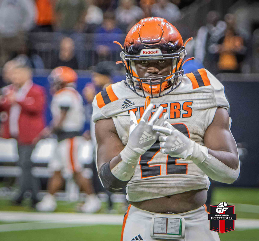 This kid is HUGE. If we're going to be more of a zone scheme running team he'll need to really love the nutrition and weights. 247 has him at 210, but I saw him in the semi's and he's closer to 225. Here's a pic of him in the Dome. He looks way bigger than from the beginning of the season. Solid runner great pad level.