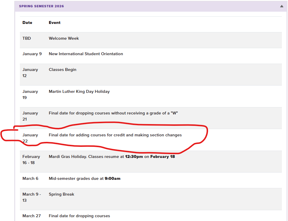 google says last day to add classes for spring is the 22nd