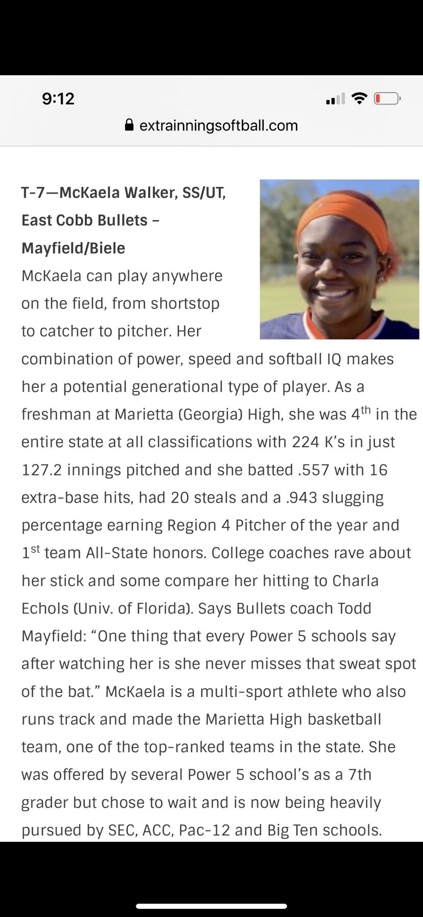 Top prospect out of GA Mckaela Walker is here for her visit. Not sure who else is here this weekend but there are a couple top pitcher recruits who are supposed to be coming in