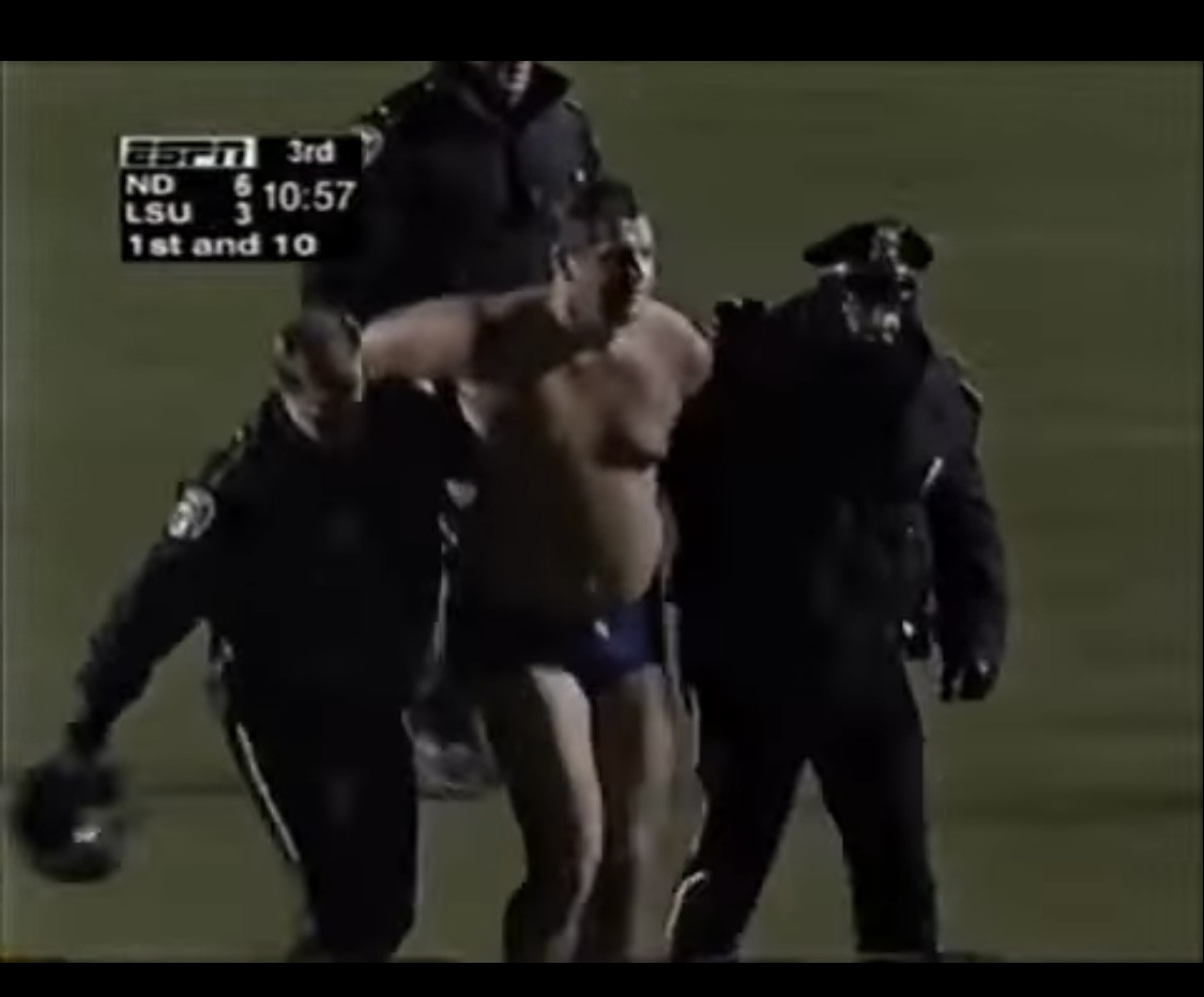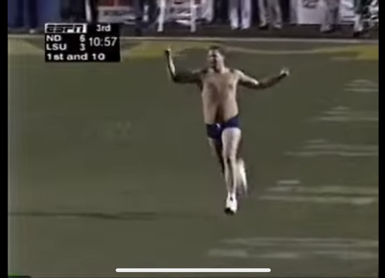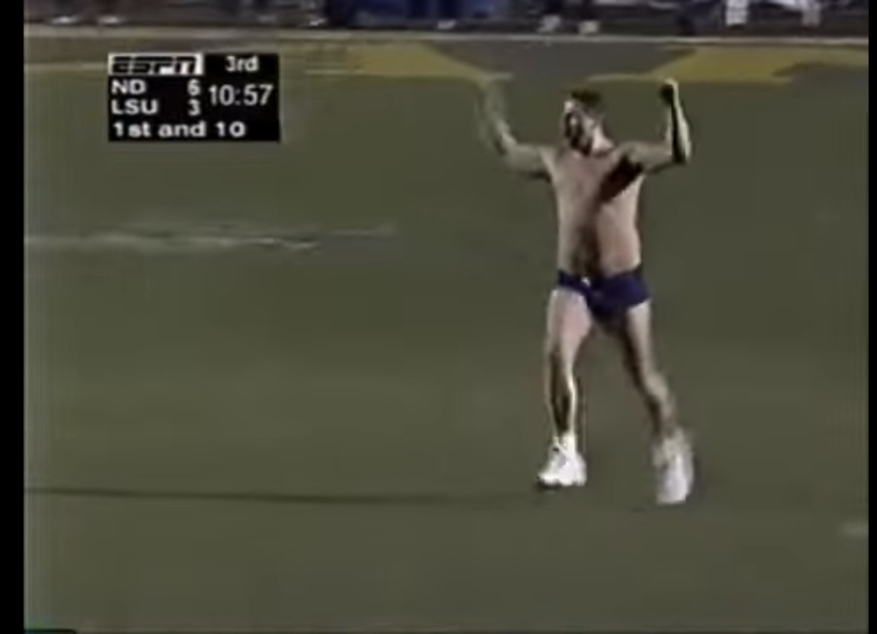 Was at that game. Forget about the streaker. All I remember is that I had my LSU Starter jacket on and it was cold AF.