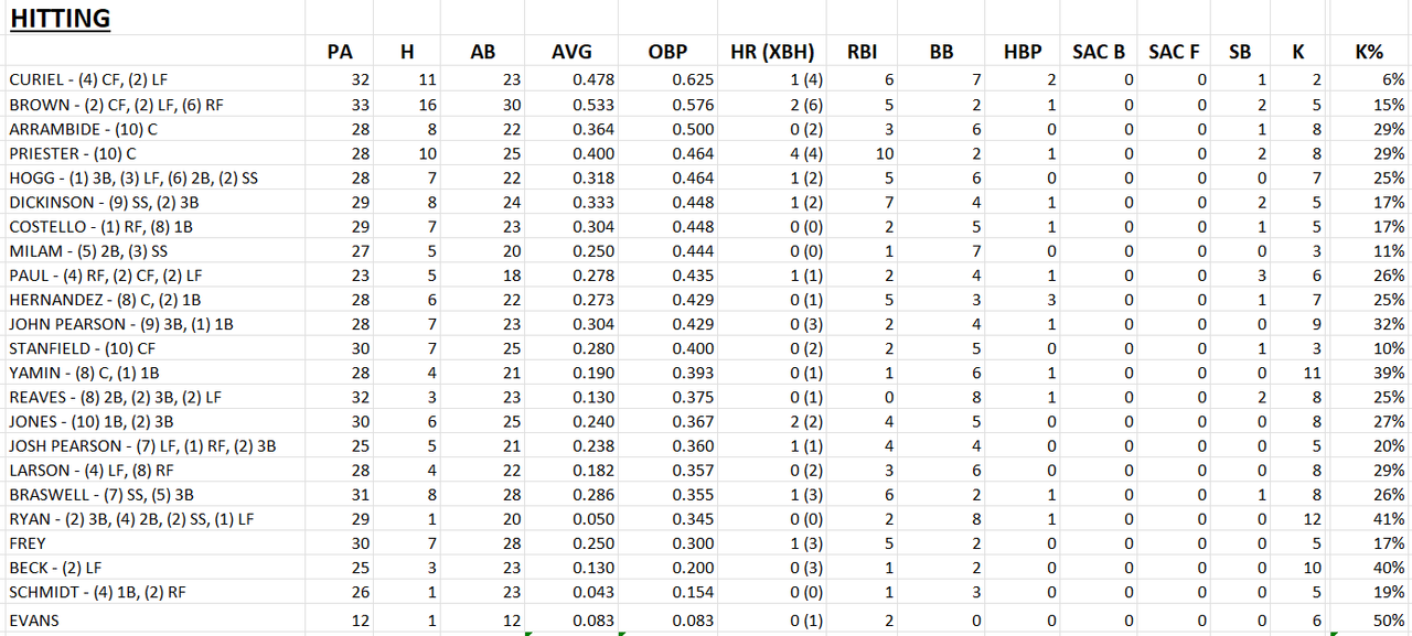 Edit: Curiel's K rate is the most impressive stat, he will see the field early and often if he keeps that up based on Jay's previous teams