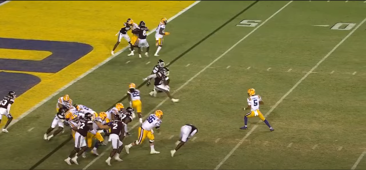 How exactly was the inside defender getting through Nabers pick before Boutte got to the ball? Hint, he wasn't and the very next second proves this.