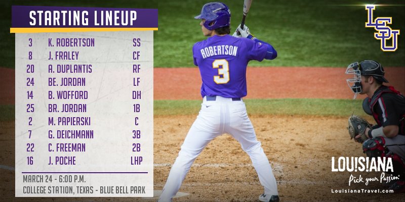 Robertson, Fraley, Duplantis due up in the top of the 1st against A&M righty Vines