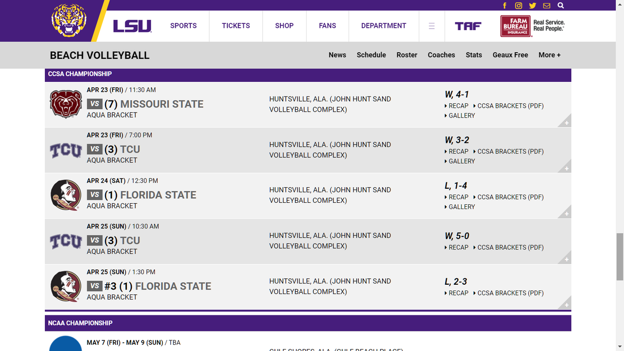 I'm not sure. I don't know what the CCSA and NCAA relationship is. LSU's schedule shows both plus a "pairs" championship in May.