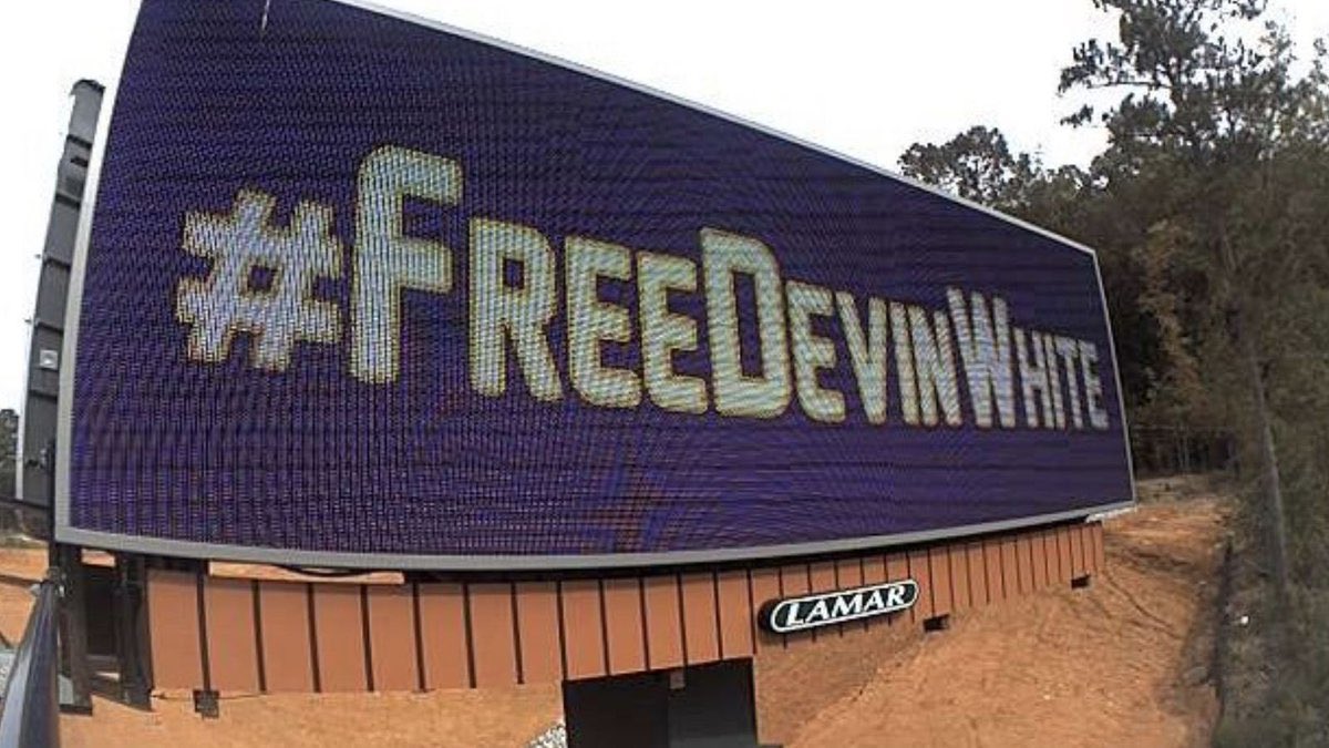 #NOW Billboards have gone up in Birmingham, Ala., home to @SEC headquarters, in support of lifting the first half ban on @DevinWhite__40 for #LSU v. #Alabama #FreeDevinWhite