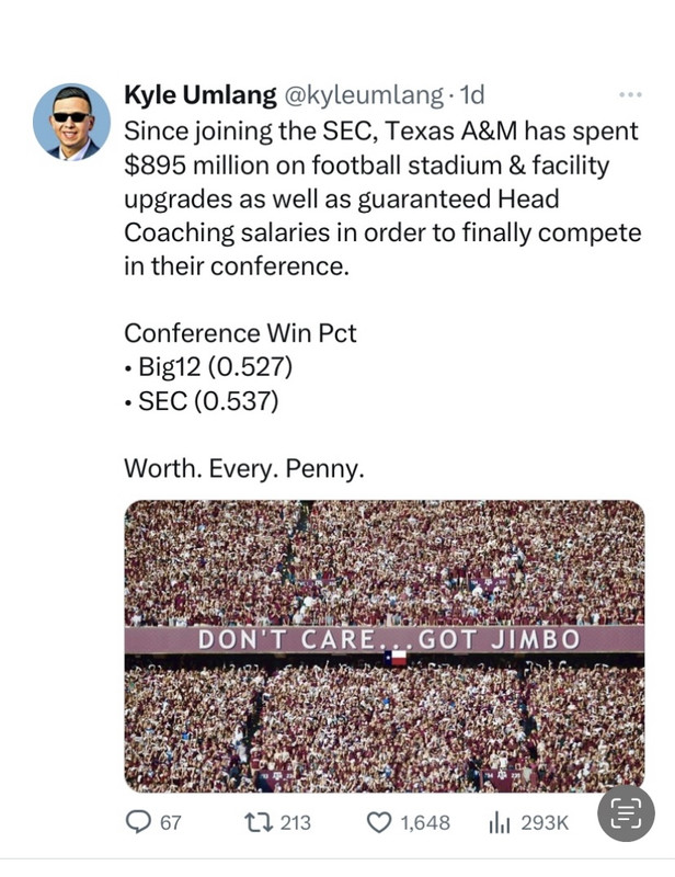 Susan Liucci is still mad because she's never won anything. I lived in College Station from 2005-2016 & all she did was whine about Texas & OU and then LSU & Bama...