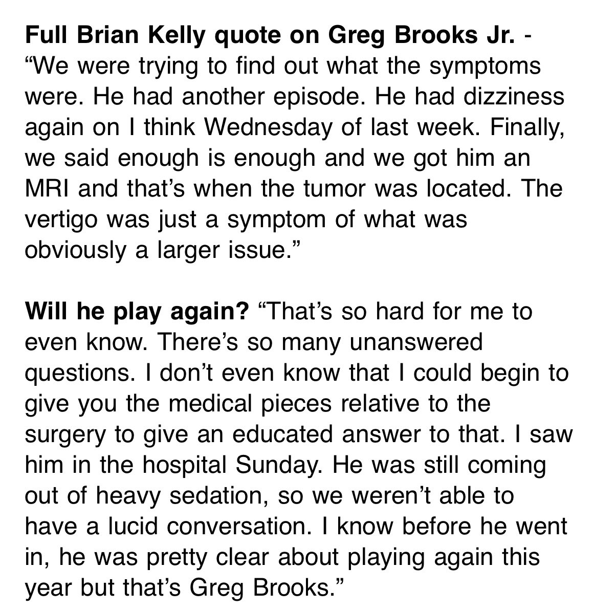 In Brian Kelly's first public remarks about Greg, he even mentioned going to the hospital to see him.
