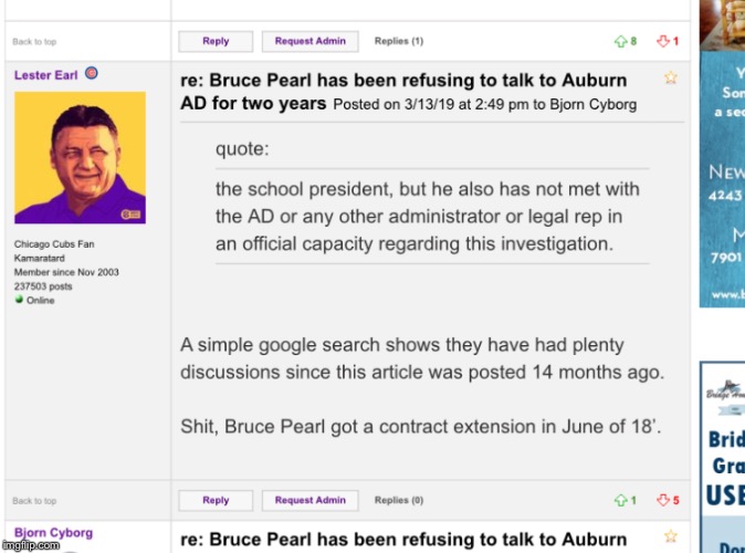 re: Bruce Pearl still refusing to interview with Auburn officials and legal counsel