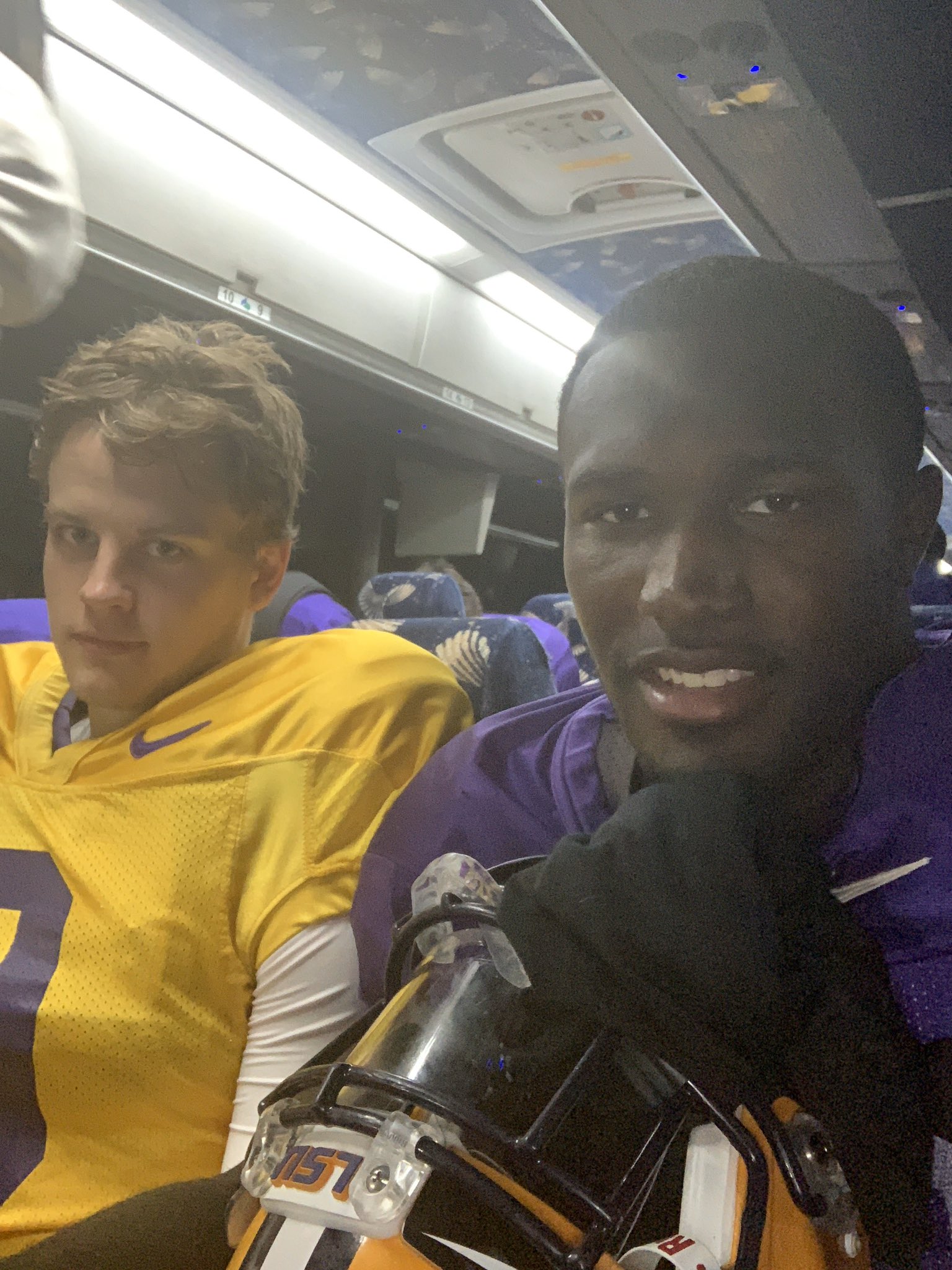 Does anyone have the photo of Burrow and Devin White sitting together on a bus in their practice jerseys?
