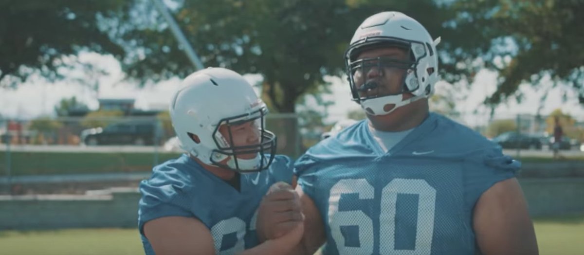 Yup, he's gigantic. Never played football before now, but played rugby in Tonga. Definitely a project. We hope that we get to see him in garbage time this year with field goal defense or something. Maybe in a year or two we'll see him make big progress, but he's very raw. He just learned what a sideline was a few weeks ago. You won't see him in our game.