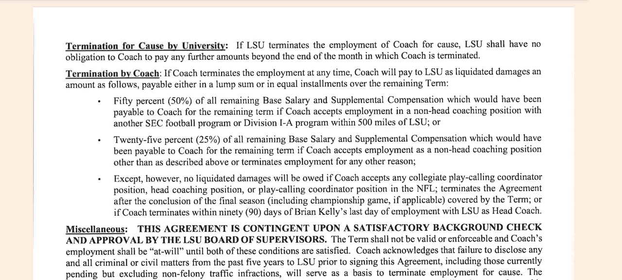 For instance, BKs buyout to LSU is $2m a year vs his $9m salary. And that's completely canceled if Woodward is no longer the AD