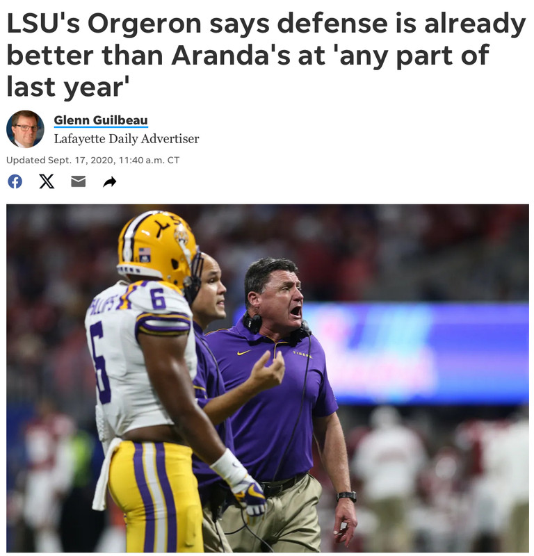 This is the head coach of the greatest LSU team ever & one of the greatest QBs ever. He doesn’t need to say that for a QB who has played 2 full games.